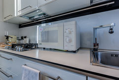 The kitchen comes with a dishwasher, microwave, Nespresso coffee machine, and all the essentials for tea and breakfast.