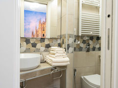 The bathroom comes with a spacious walk-in shower and a hairdryer, ideal for refreshing after a long day.